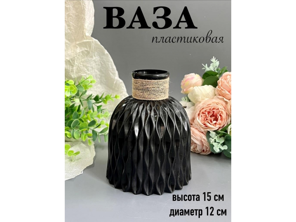 Ваза пластиковая для цветов (h-15см, d-12см) черный