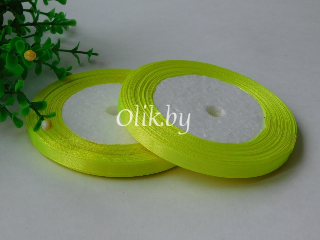 Лента атласная 0.6см, бобина 23 м, лимонный