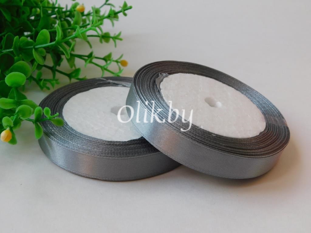 Лента атласная 1.2см, бобина 23 м, серый