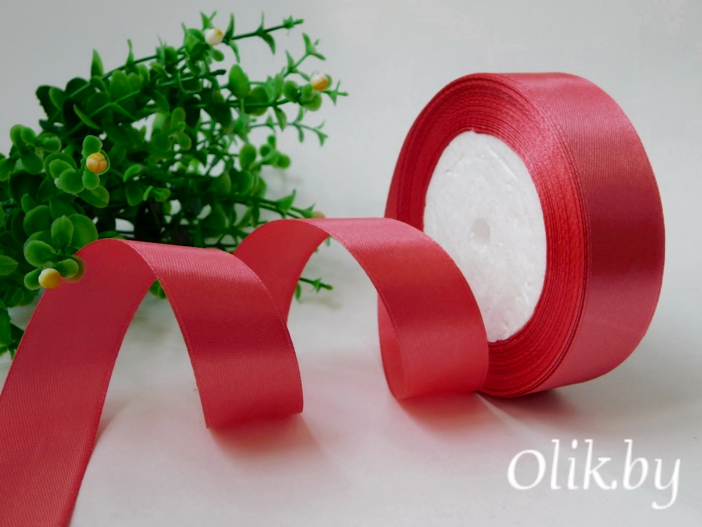 Лента атласная 2,5 см, розовая пенка №134/65, 23 м