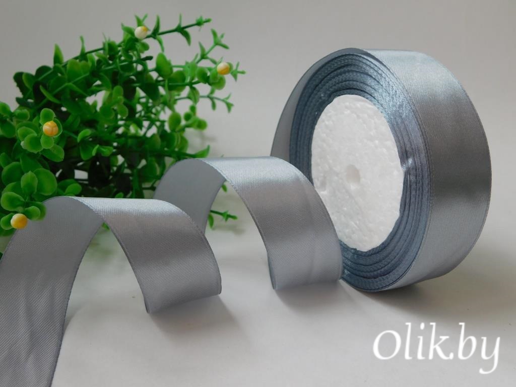 Лента атласная 2,5 см, темно-серый №180, 23 м