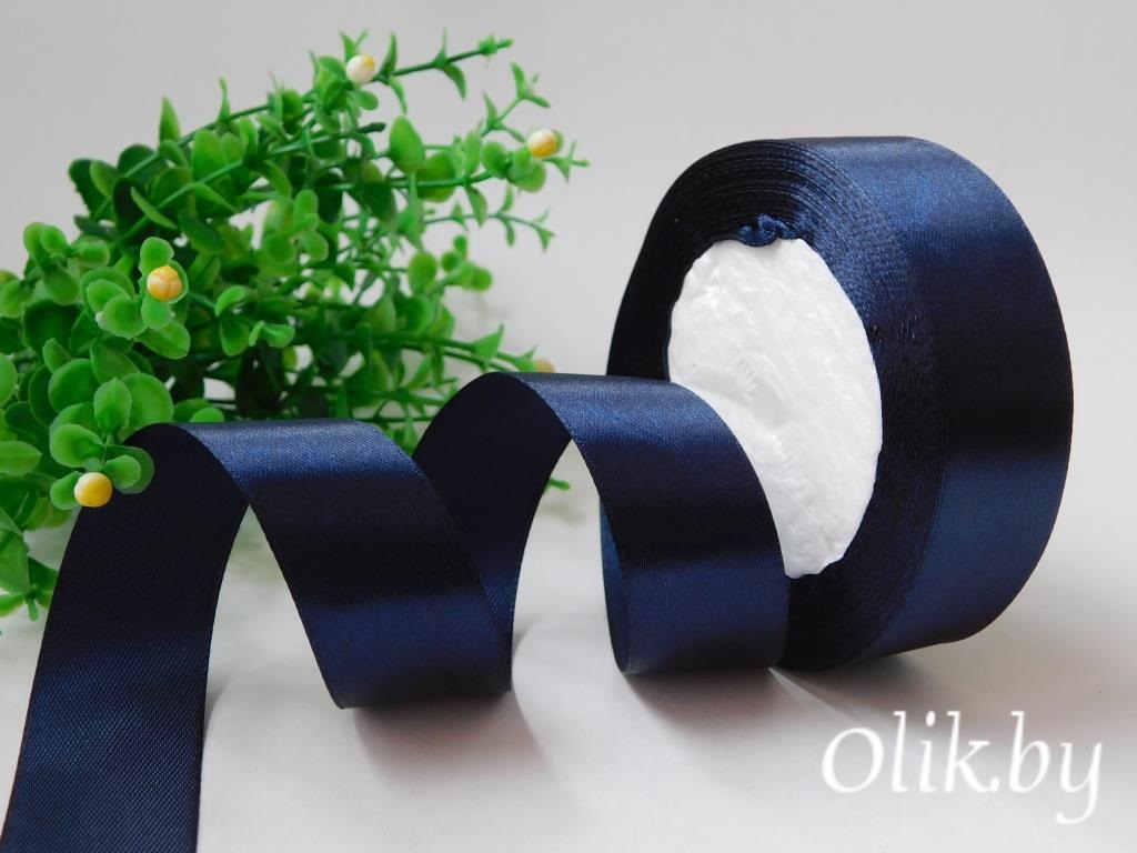 Лента атласная 2,5 см, темно-темно-синий, 23 м