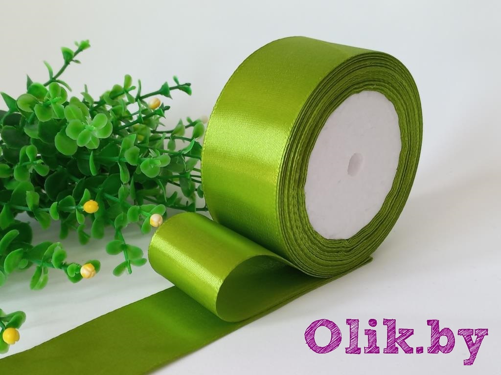 Лента атласная 4 см, фисташковый №184, 23 м