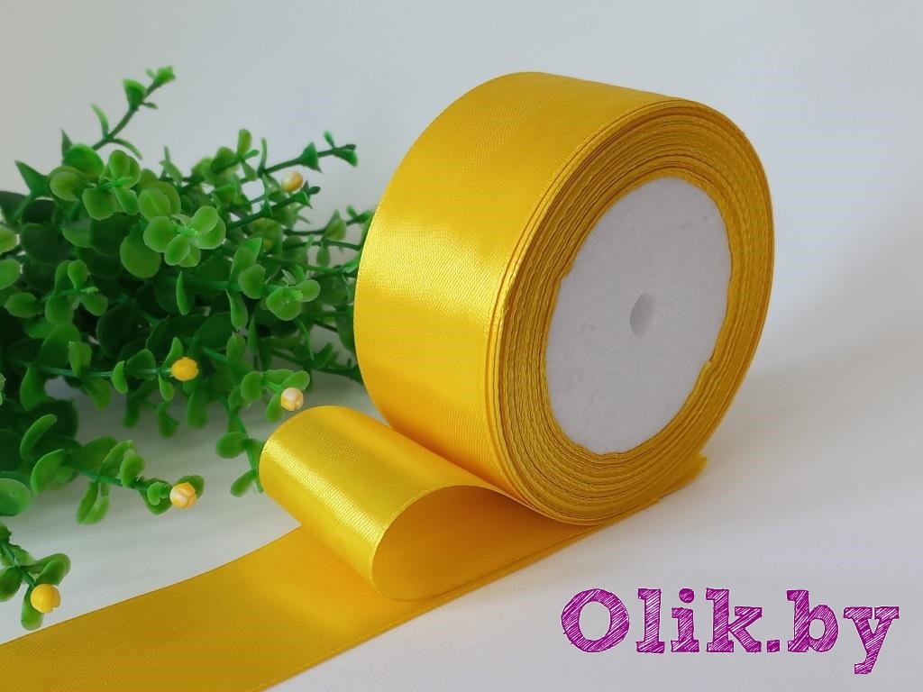 Лента атласная 4 см, желтый №132, 23 м