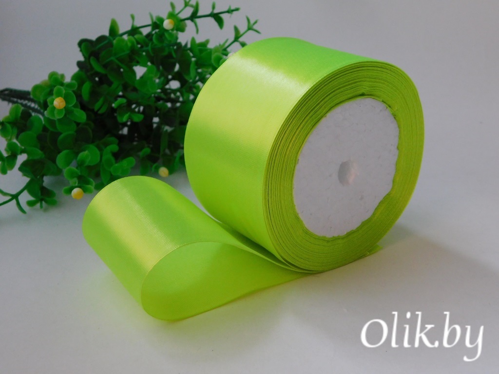 Лента атласная 5 см, лаймовый, 23 м