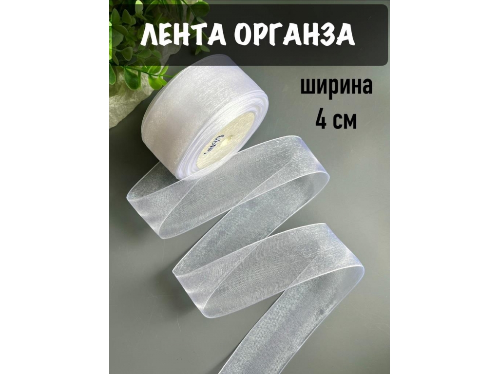 Лента органза 4 см, белый