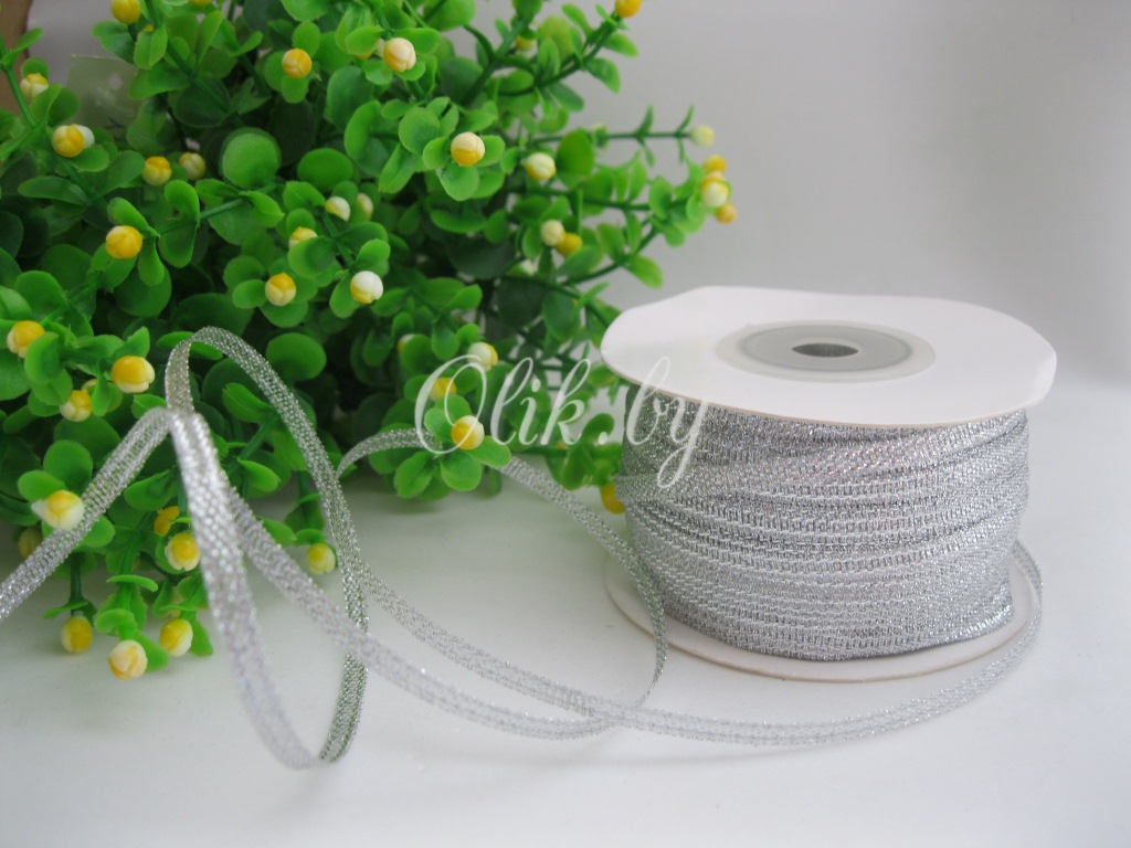 Лента парча, 3мм, серебро, 10м