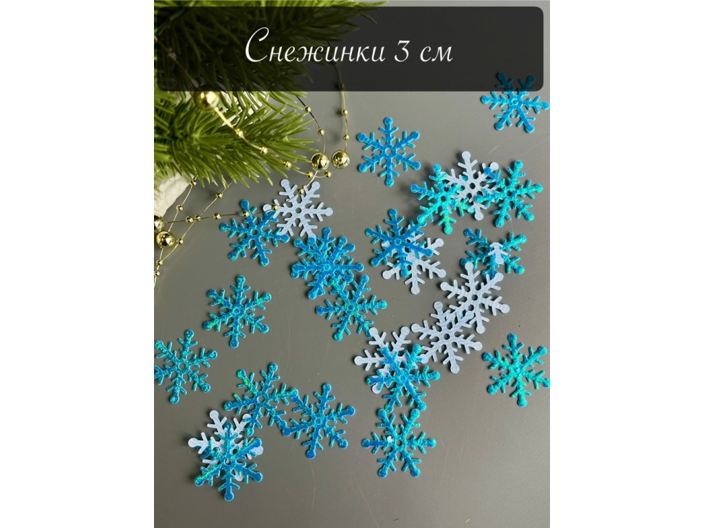 Снежинки 3см (перламутровые голубые), 25 шт