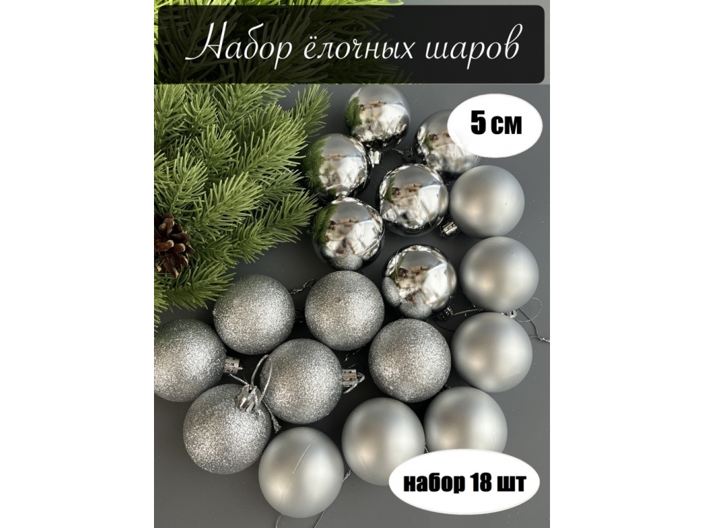 Набор елочных шаров 5 см (уп.18шт) серебряный