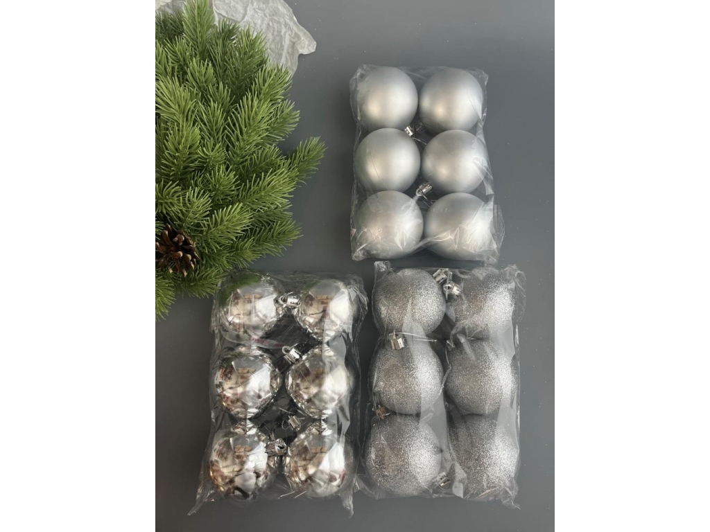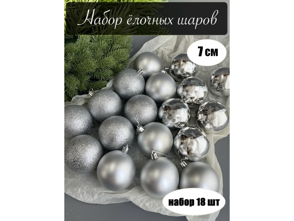 Набор елочных шаров 7 см (уп.18шт) серебряный