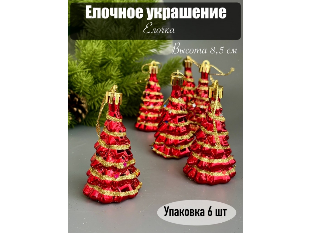 Елочное украшение Елочка 8,5 см (уп.6 шт)