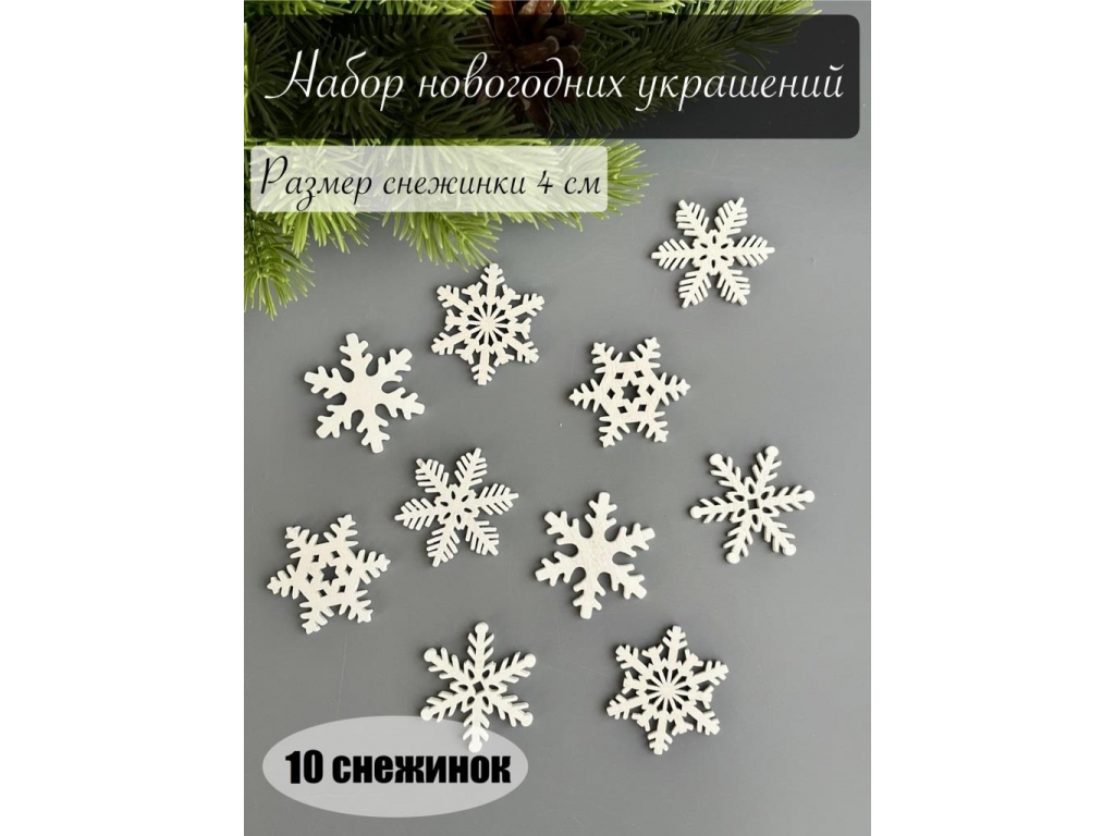 Елочное украшение Снежинка (4 см) белый, 10 шт