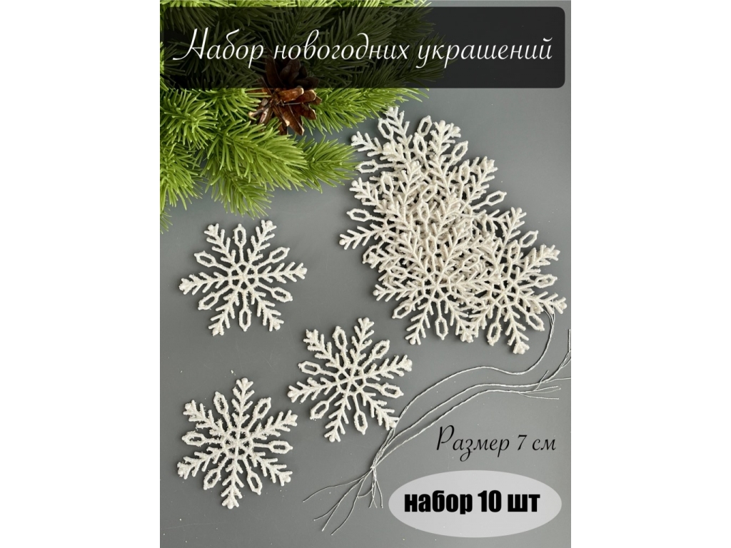 Новогоднее украшение "Снежинки" 7 см, 10 шт