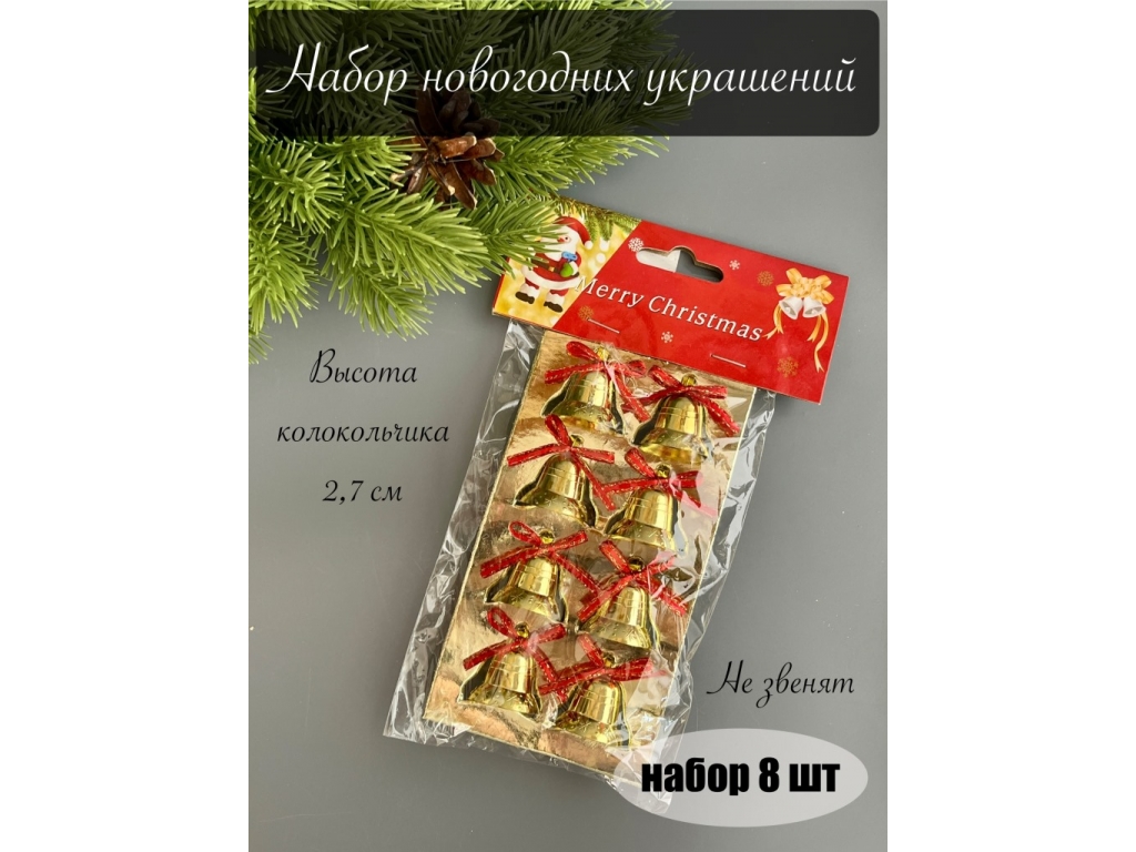 Новогодние украшения "Колокольчики" 2,5 см (8 шт)