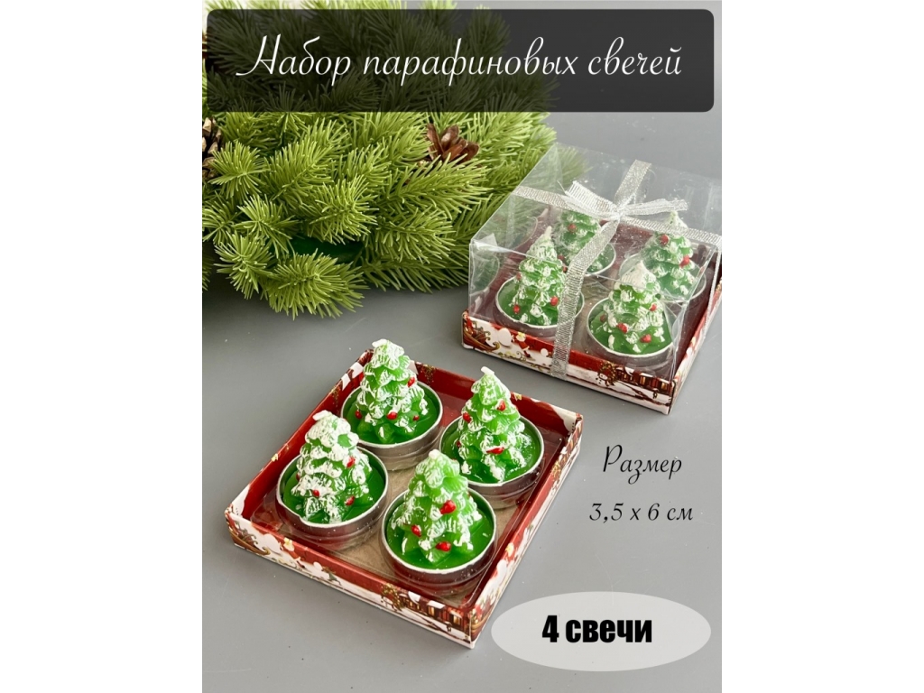 Свечи парафиновые 3,5*6 см (4 шт) "Ёлочка"