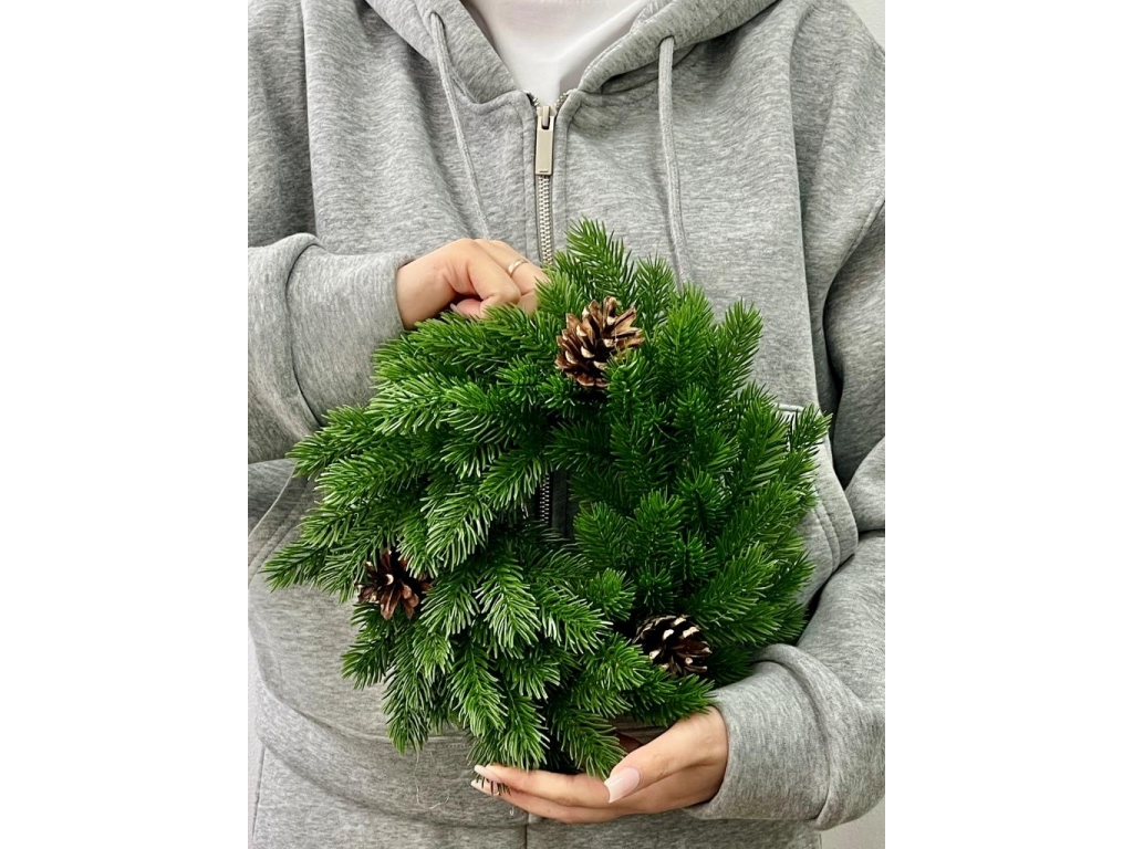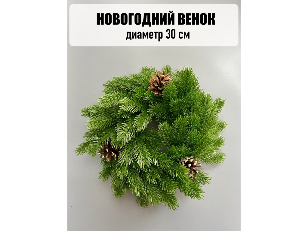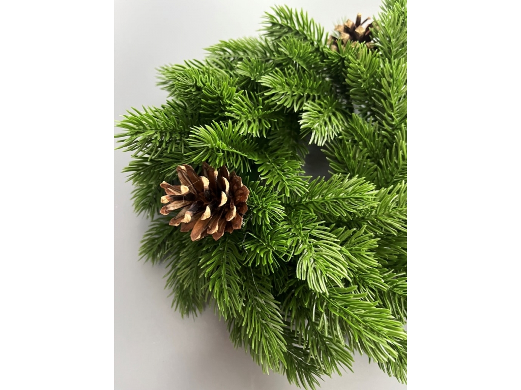 Новогодний венок малый с шишкой 30 см, зеленый
