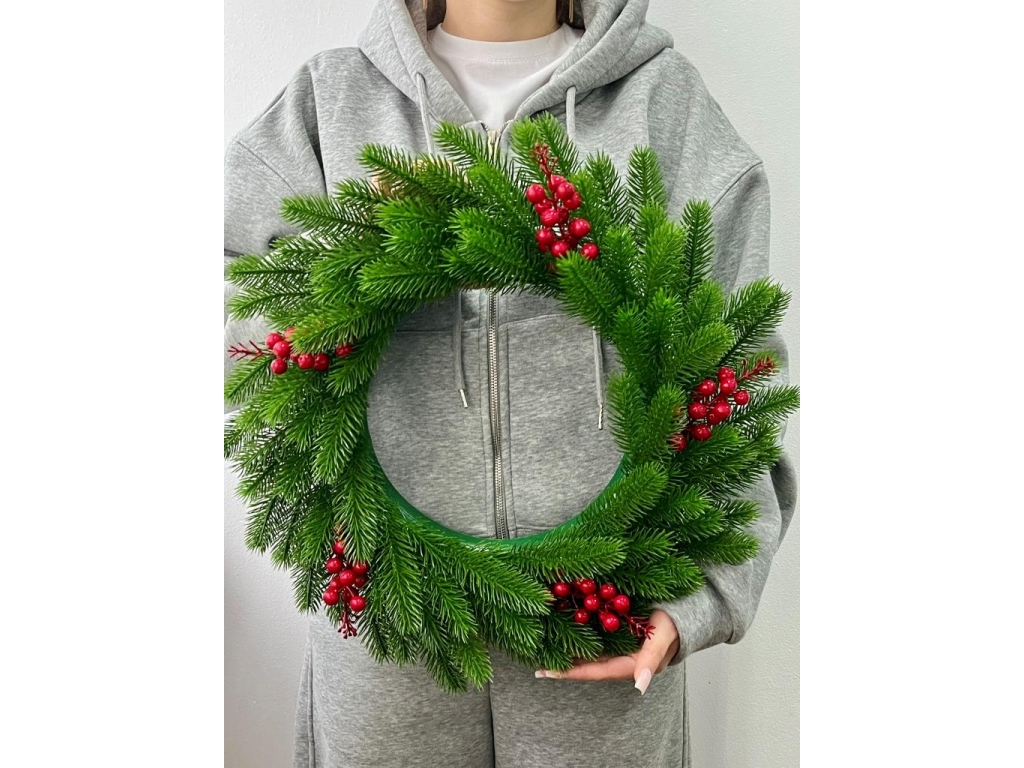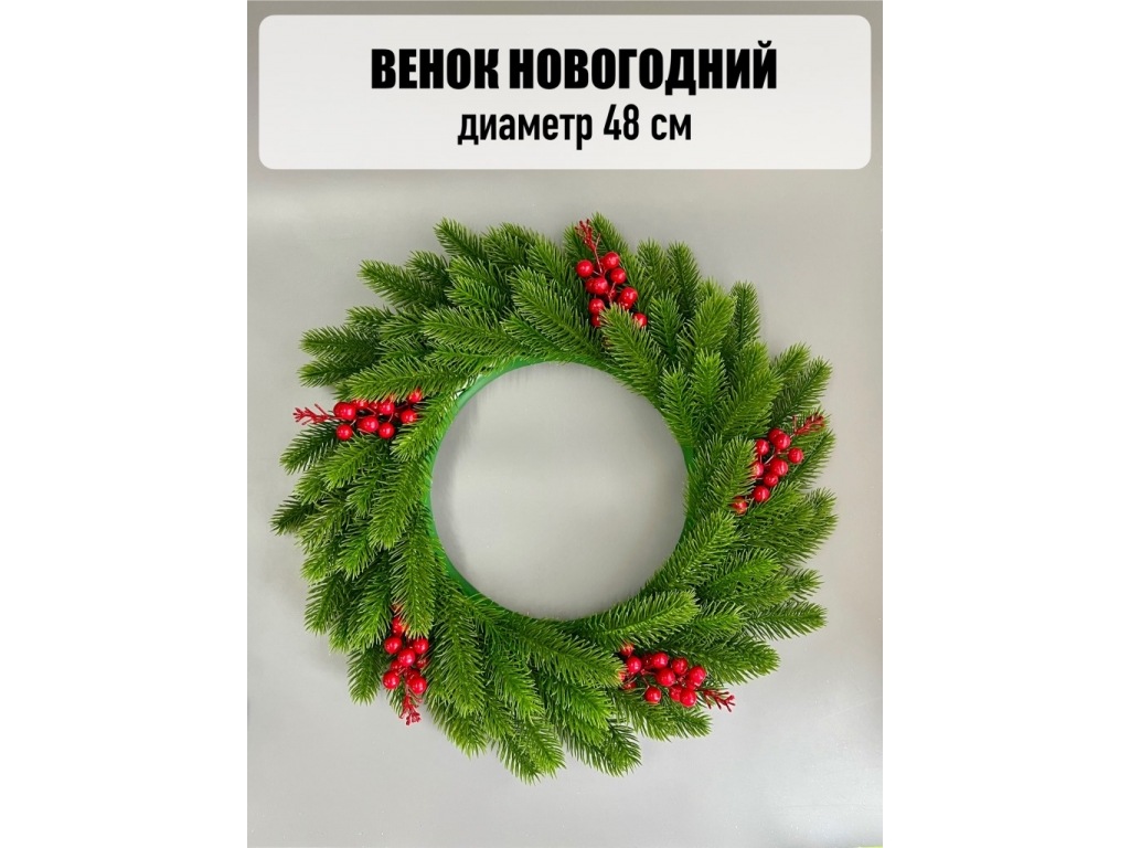Новогодний венок с ягодой большой, 48 см