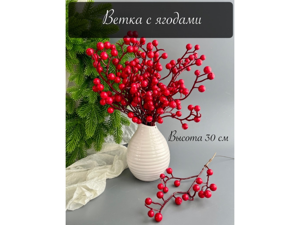 Ветка с ягодами 30 см красный