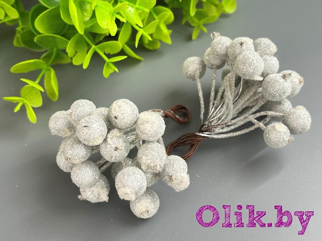 Ягодки на веточке сахарные 1.2см, серебро (примерно 20 ягод)