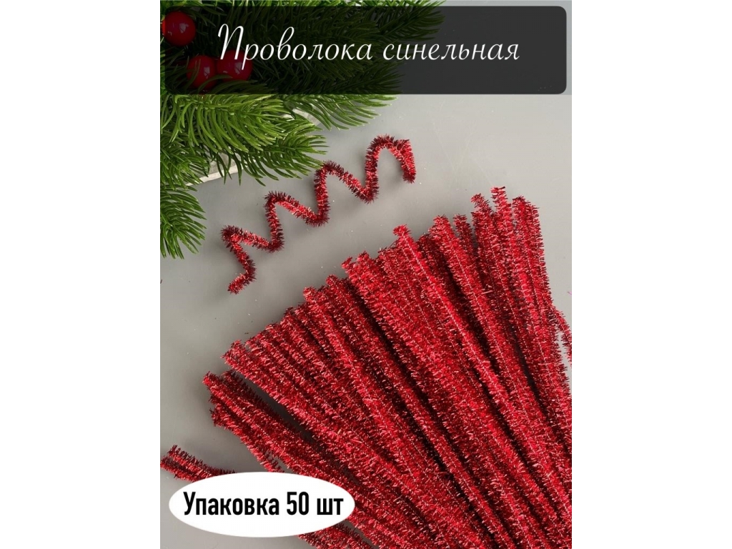 Проволока пушистая-синельная (металлик) 30см(красный), 50 шт