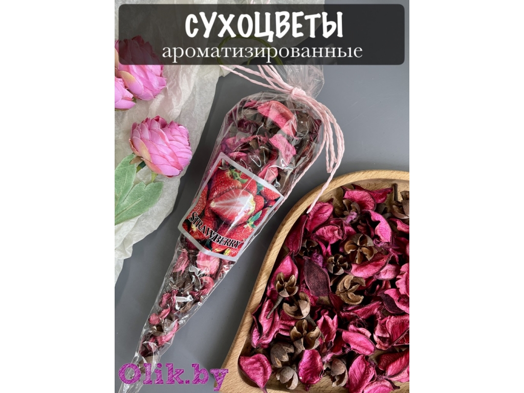 Сухоцветы, арома в кульке, 45-55 гр (клубника)