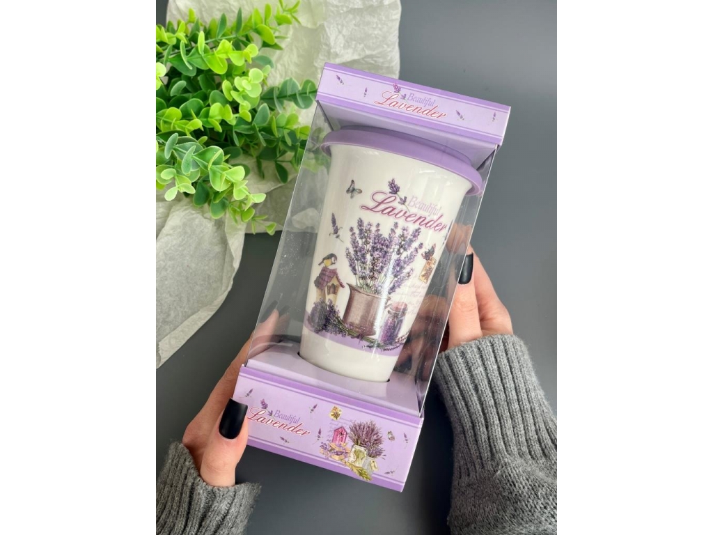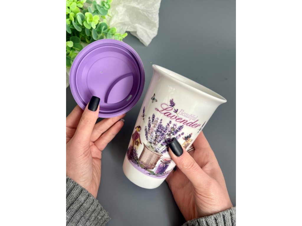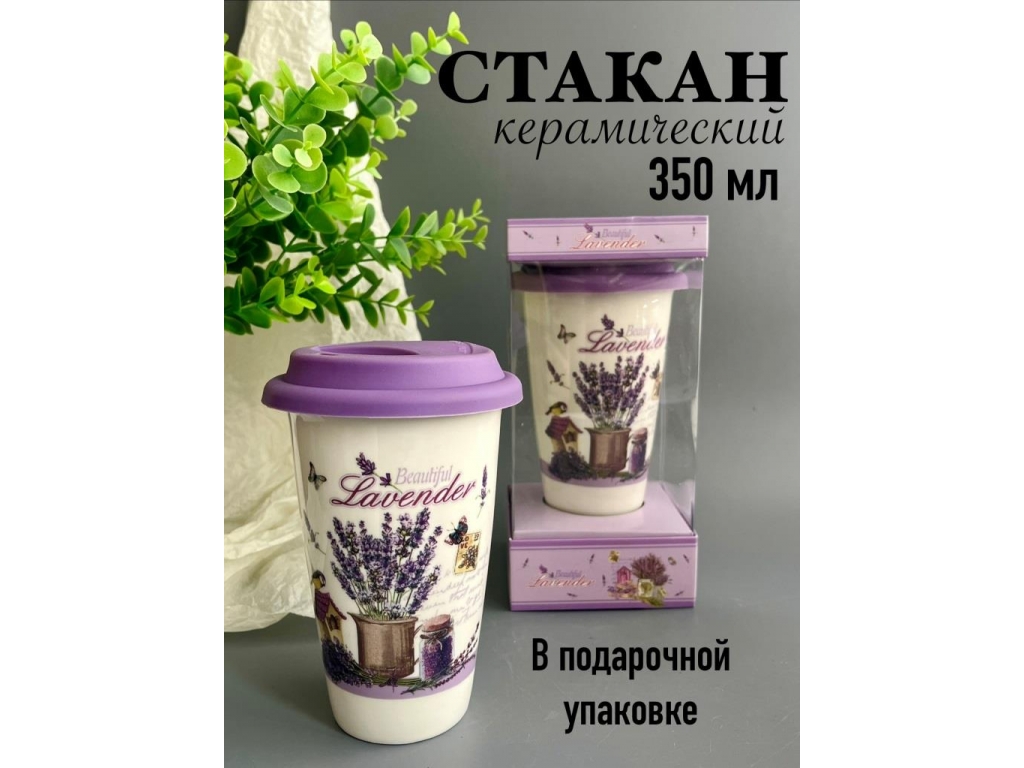 Стакан керамический с крышкой, 350 мл, подарочный набор