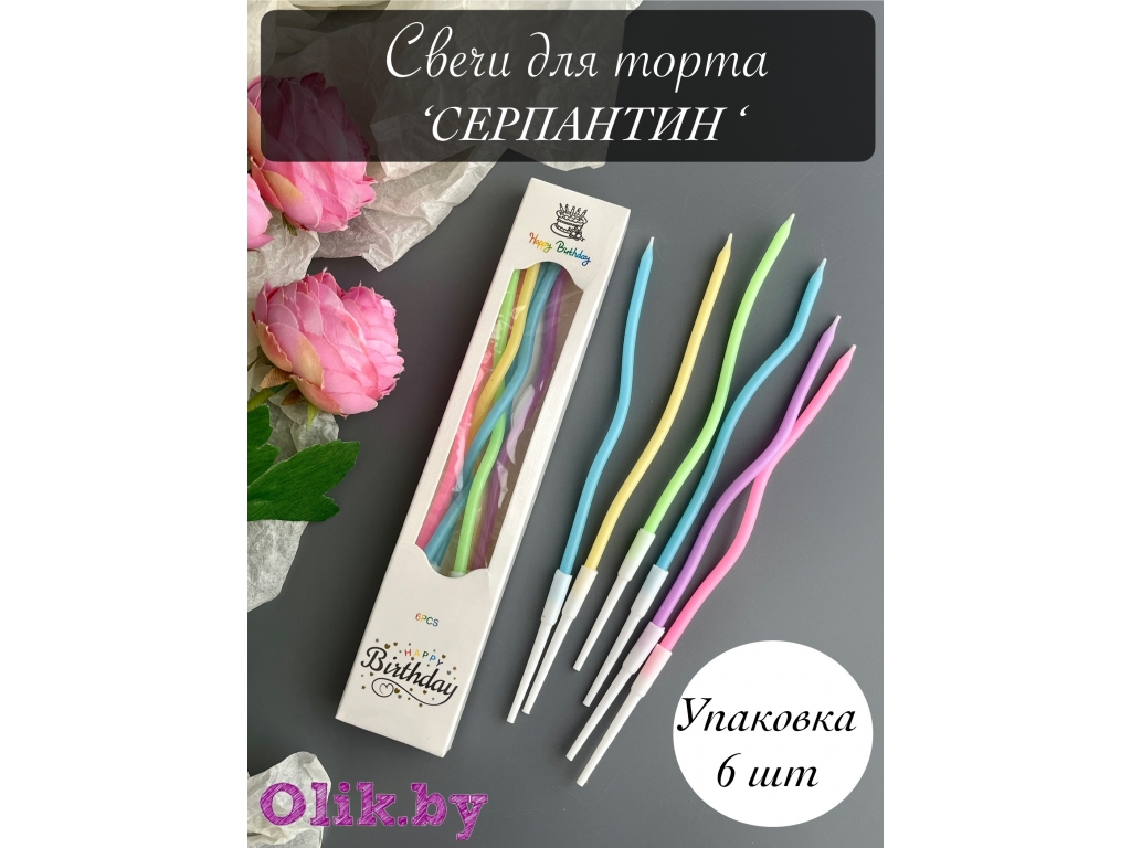 Свечи для торта "Серпантин" 6 шт, коктейльные, разноцветные