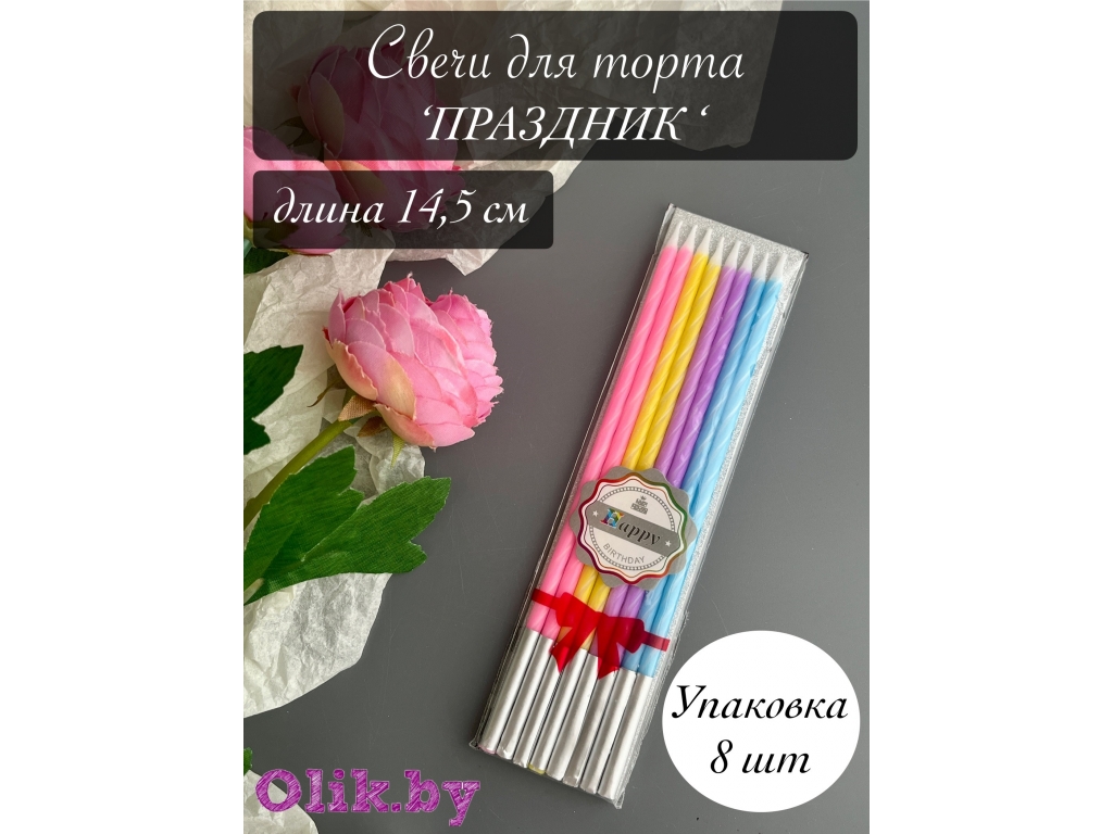 Свечи в торт "Праздник", 8 шт, 14,5 см, разноцветные